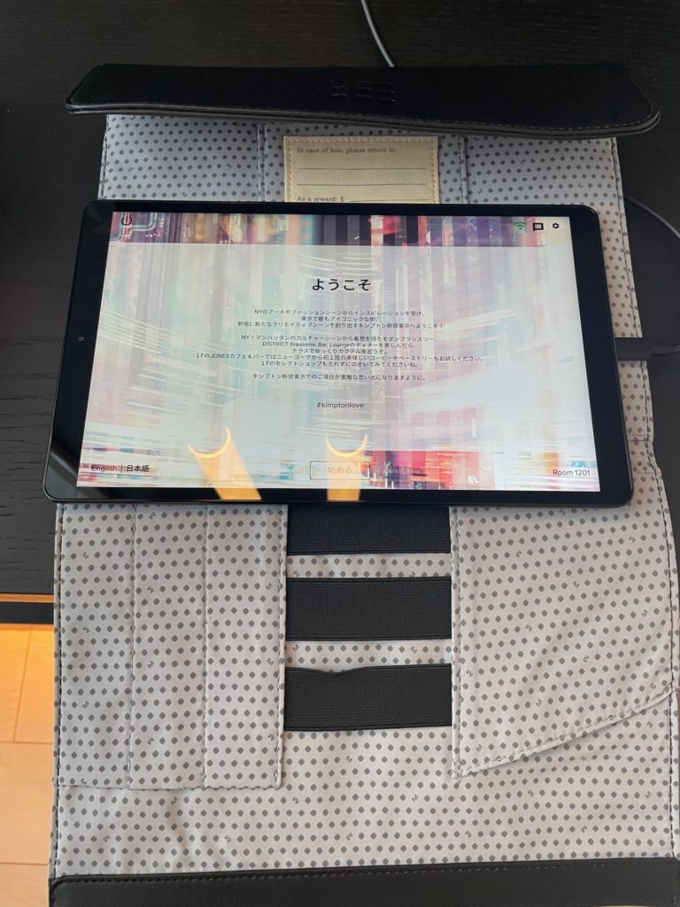 こちらのタブレットはルームサービスの注文に使えますし、アメニティなどを持って来てもらうことも可能です