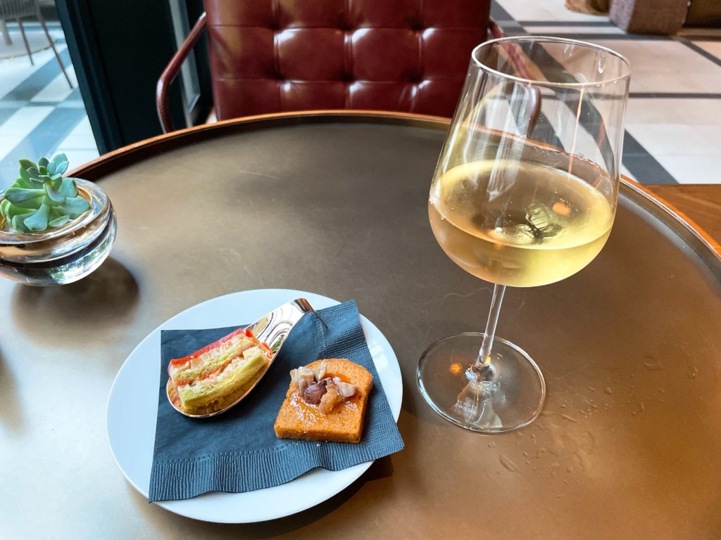 飲み干した頃にカナッペがやって来たので白ワインを頂きます