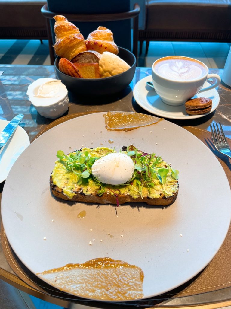キンプトン新宿東京エグゼクティブキングの客室の様子、宿泊者無料特典であるソーシャルアワーとモーニングキックスタートの内容、ブランチのメニューをご紹介します。客室は明るくスタイリッシュで、スタッフの方のホスピタリティーが素晴らしく居心地のいいホテルです。