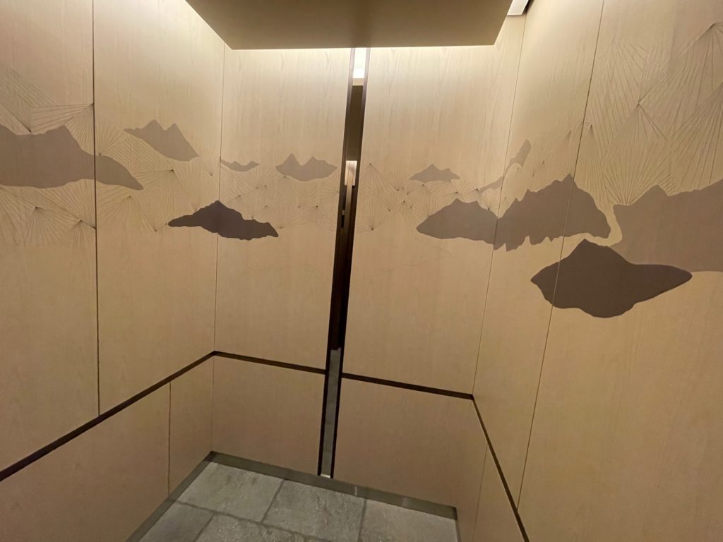 エレベーターで12階に上がります。フロント付近の雰囲気と打って変わって、エレベーター内は和の雰囲気!