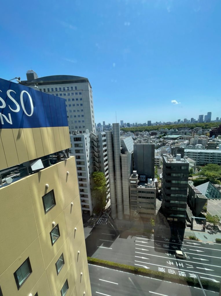 私の宿泊した部屋は甲州街道沿いの高層階でした。隣のホテルとは部屋の中が見えそうなくらい近かったですが、目の前は高い建物がなく、代々木公園や六本木あたりまで見渡すことができました。