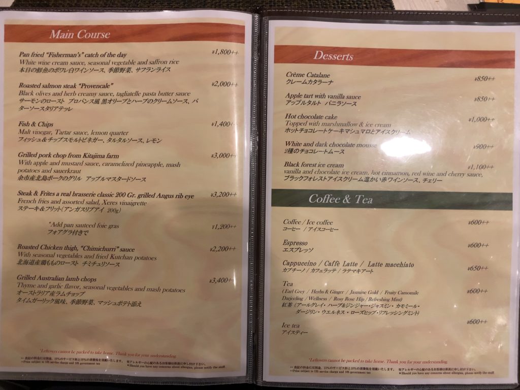 アルパインブラッセリーのイブニングカクテル最大の特徴は、カクテルタイムに無料のドリンク、おつまみを注文できるだけでなく、追加料金を支払いディナーを注文することも可能です。また、アルパインブラッセリーではマリオット会員はレストラン割引が適用されます。