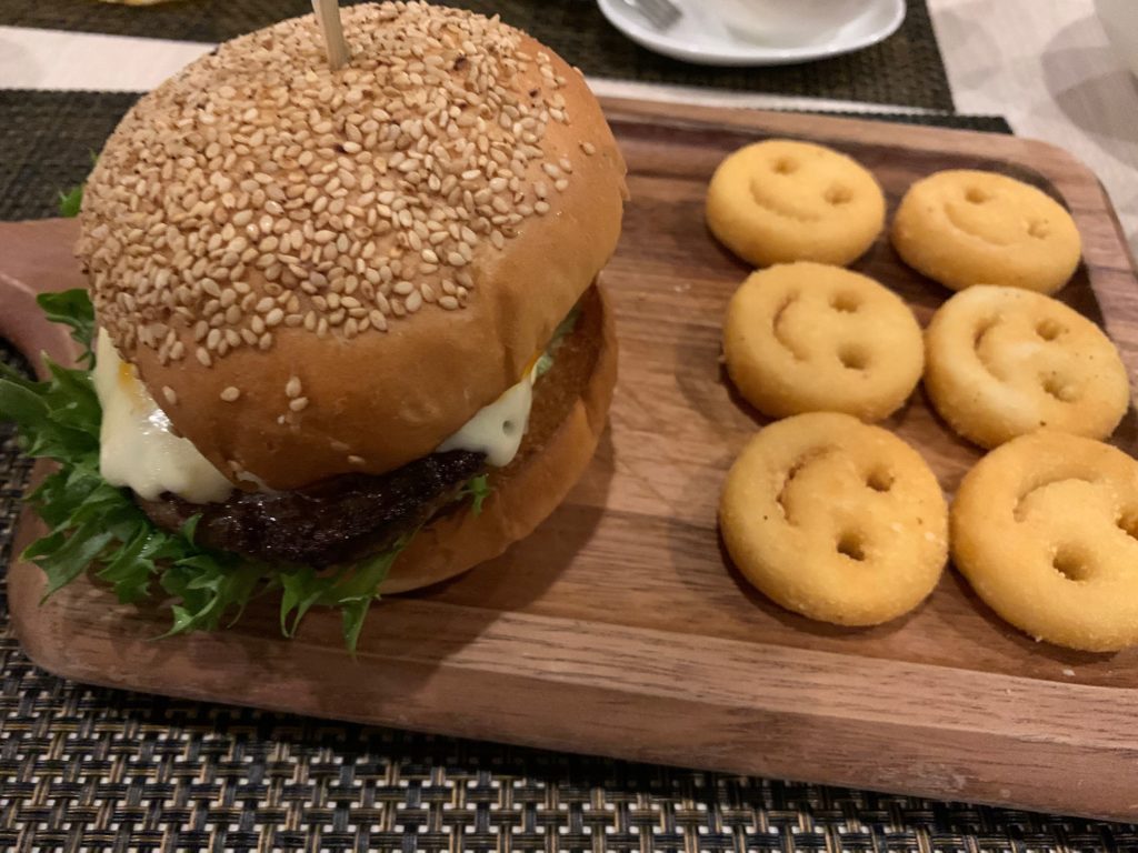 キッズバーガーとスマイルポテト or お子様プレート(ハンバーグ、から揚げ、エビフライ、スマイルポテトフライ)から選択可能です
