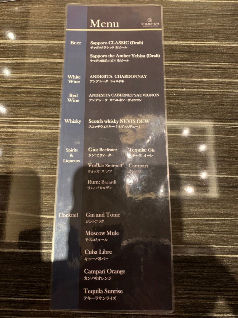 サッポロクラシック生ビールは2つのホテルで共通ですが、もう1種類のビールがトリビュートはキリン一番搾り生ビールなのに対してシェラトンはサッポロ琥珀エビス生ビールとちょっぴり高級です(笑)