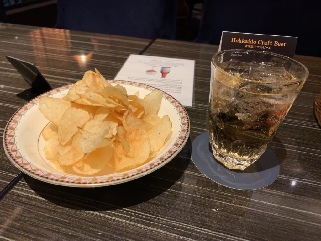 3杯目はジン(ビフィーター)をジンジャーエールで割っていただきました。ポテトチップスを注文します