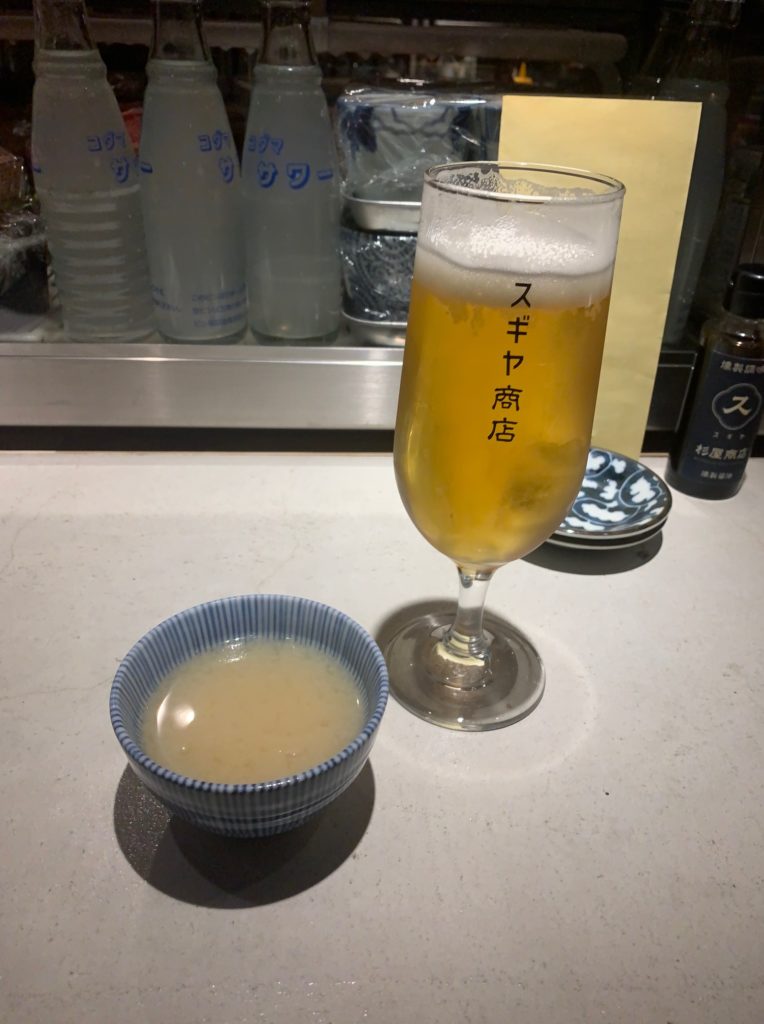 お通しとしてしじみの味噌汁が出てきました。このお味噌汁は普通に美味しかったです