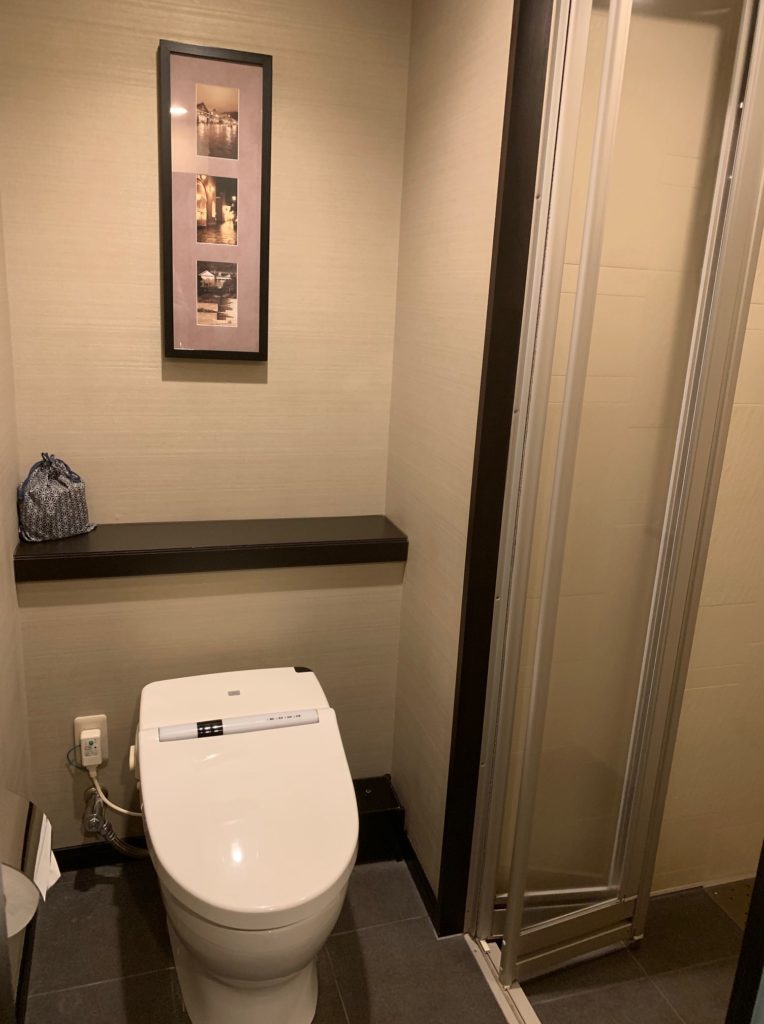 トイレ右側の扉の奥はシャワーブースとなっています。大浴場があるため部屋にはツイン以下の部屋にはバスタブはなくシャワーブースしかありません。