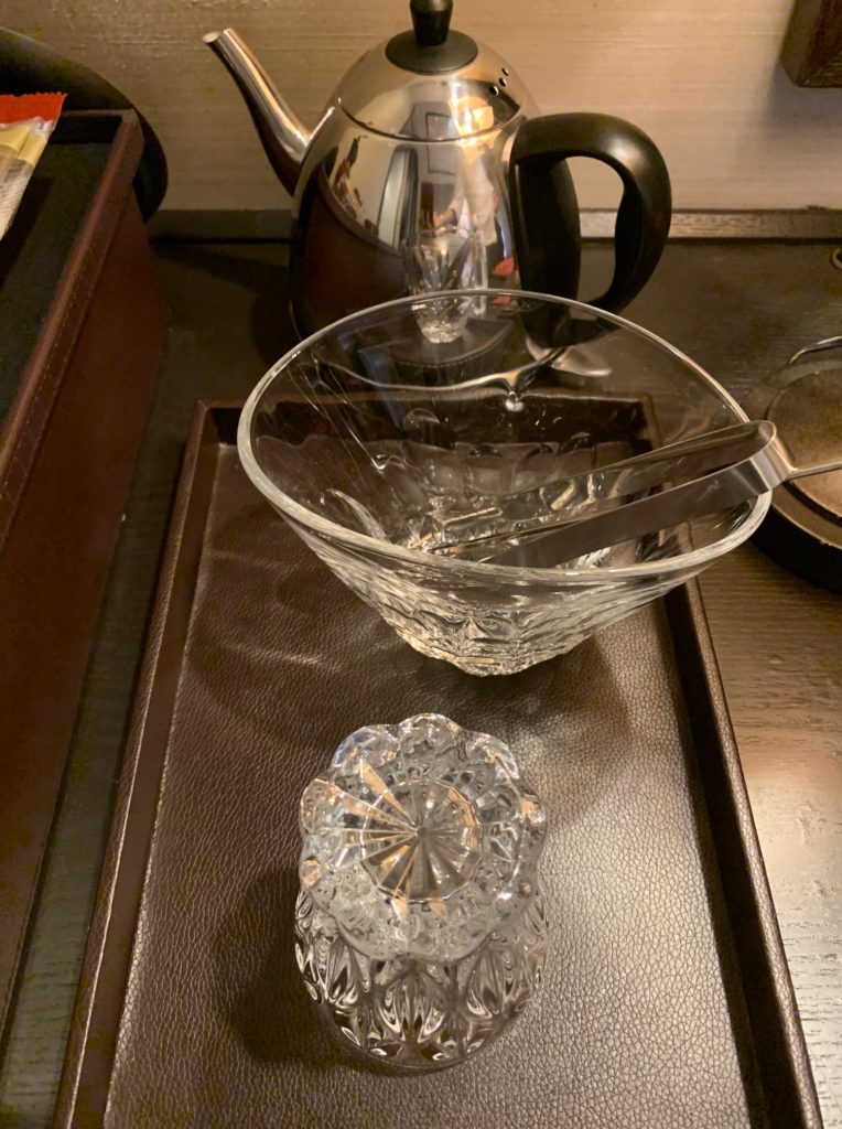 布をめくるとアイスペールがありました。また電気ケトルもあります。