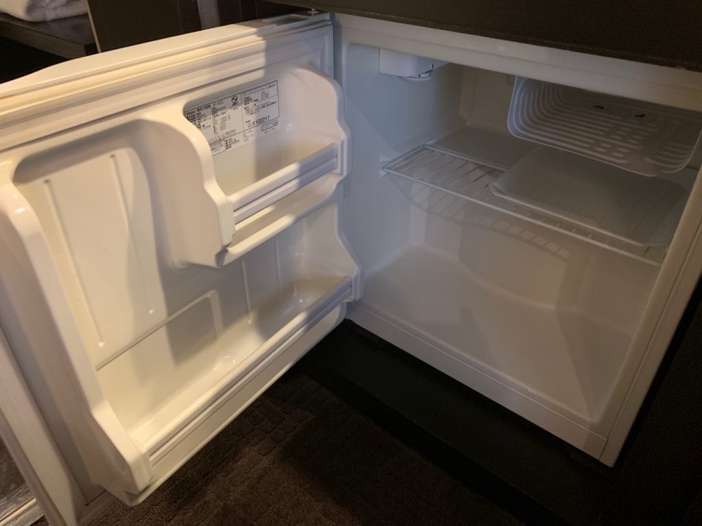 冷蔵庫の中は空っぽです。電源を入れないと冷えないことに注意が必要です