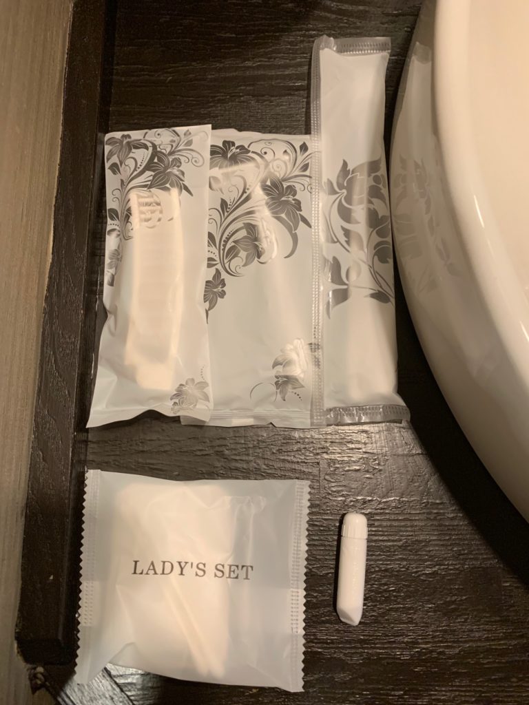アメニティはブラシ、カミソリ、歯ブラシ、レディースセット(コットン、綿棒など)はあります