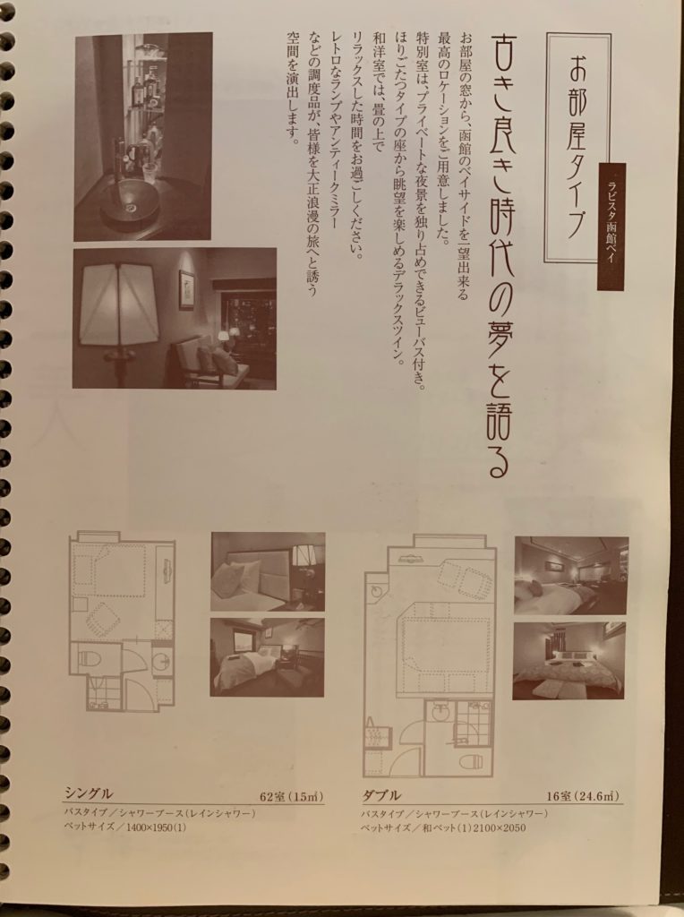 函館には観光名所もたくさんあり、ラビスタ函館ベイも観光名所に近いですし、朝食も温泉も素晴らしいので、部屋にいるのは寝る時だけという方も多いでしょうから少々狭くても気にならないと思われます。