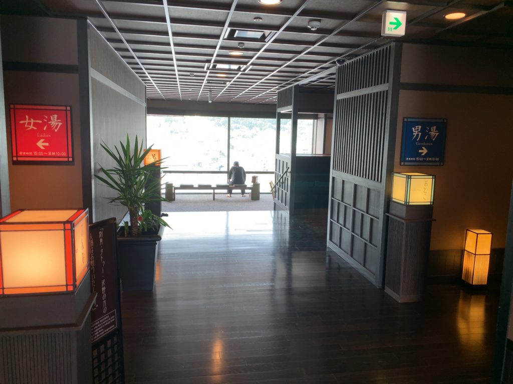 13階でエレベーターを降りて右手が男湯、左手が女湯となります