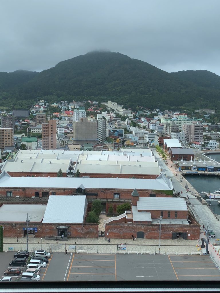 この時はちょうど雲がかかっちゃいましたが函館山頂上の展望台も見えます!そして目の前には赤レンガ倉庫群と抜群の眺めです。もちろん夜景も素敵です。