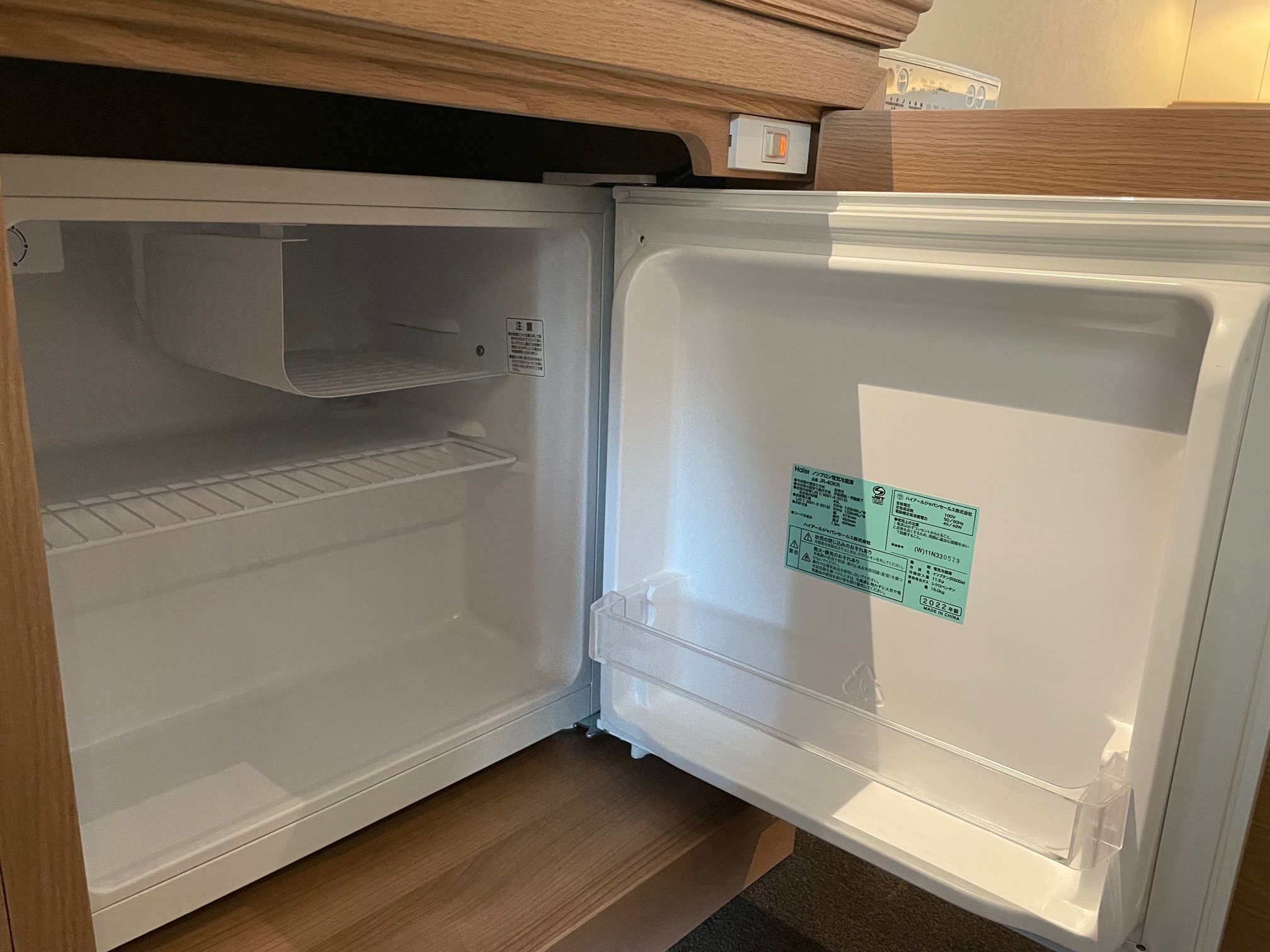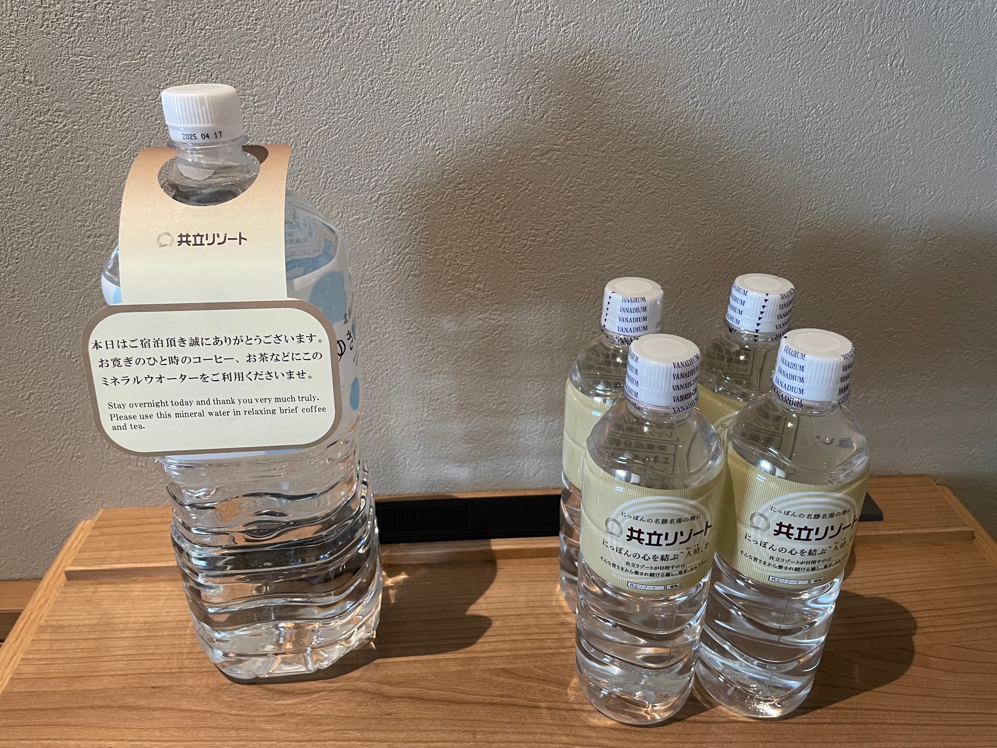 冷蔵庫の上にはミネラルウォーター。2Lサイズのものが置かれておりコーヒーを淹れるためにも使えて良いです。