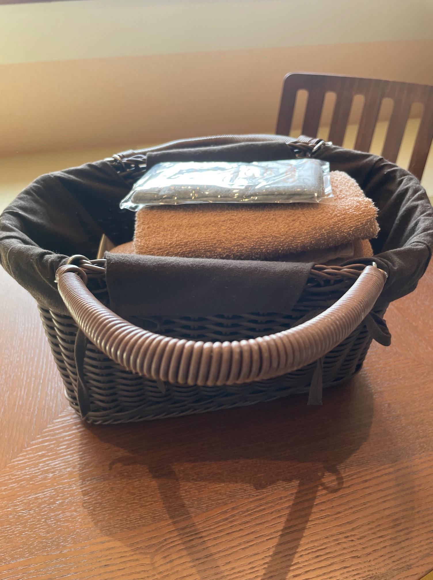 湯かごにはタオルセットと足袋状の靴下が入っています