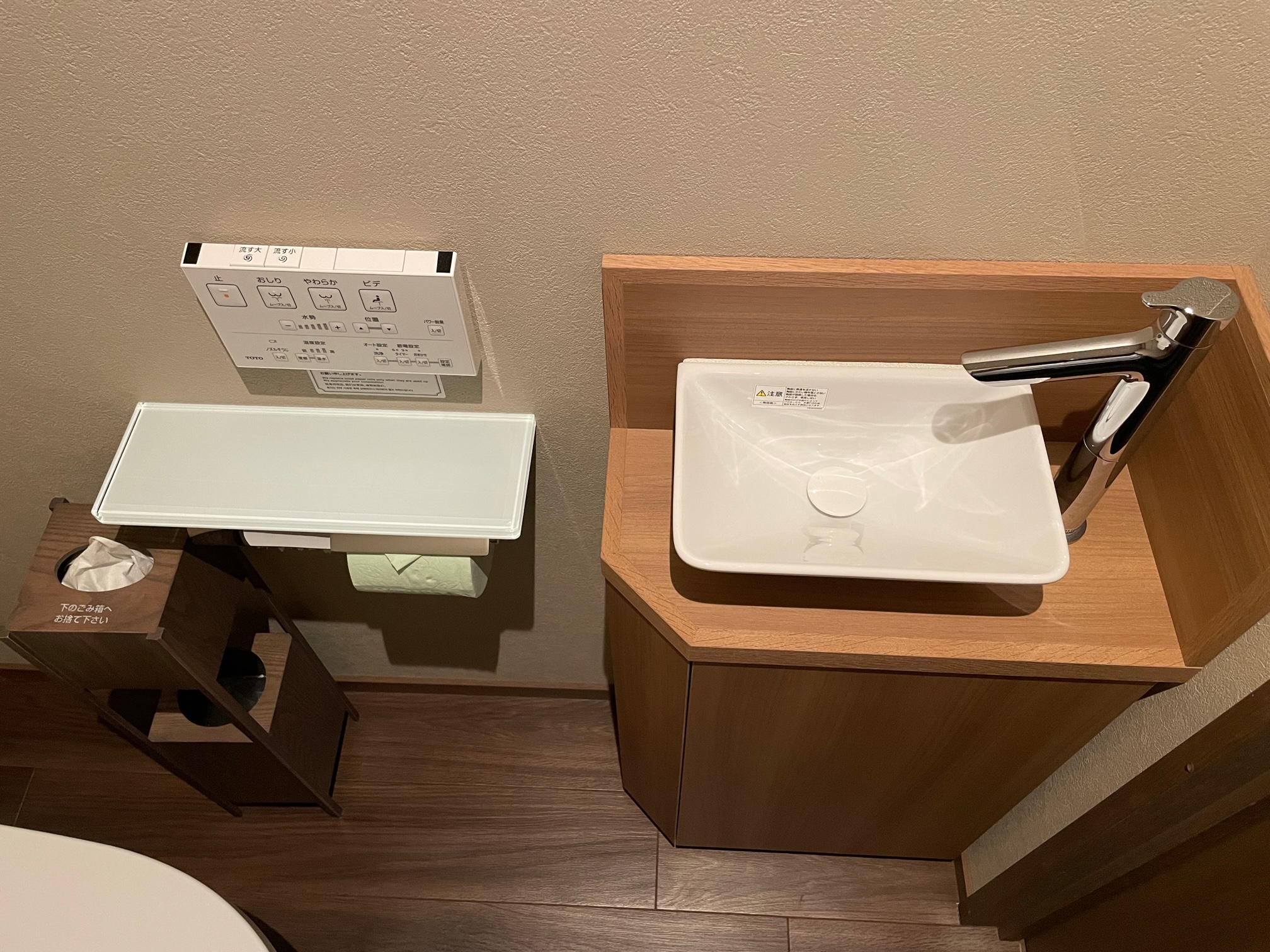 ウォシュレット付きでトイレ内にもちょっとした手洗いがあります