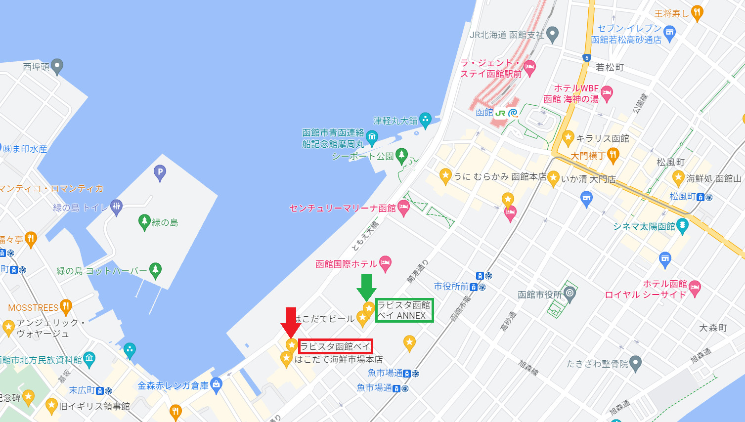 そんな人気のラビスタ函館ベイの別館「ラビスタ函館ベイANNEX」が2023年2月にオープンしました!ラビスタ函館ベイANNEXの場所はラビスタ函館ベイから約300m函館駅側となります。