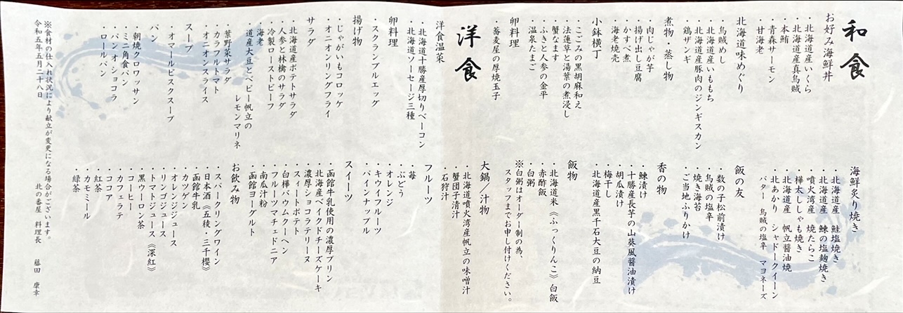 それではラビスタ函館ベイANNEX北の番屋朝食ブッフェのメニューをご紹介していきます