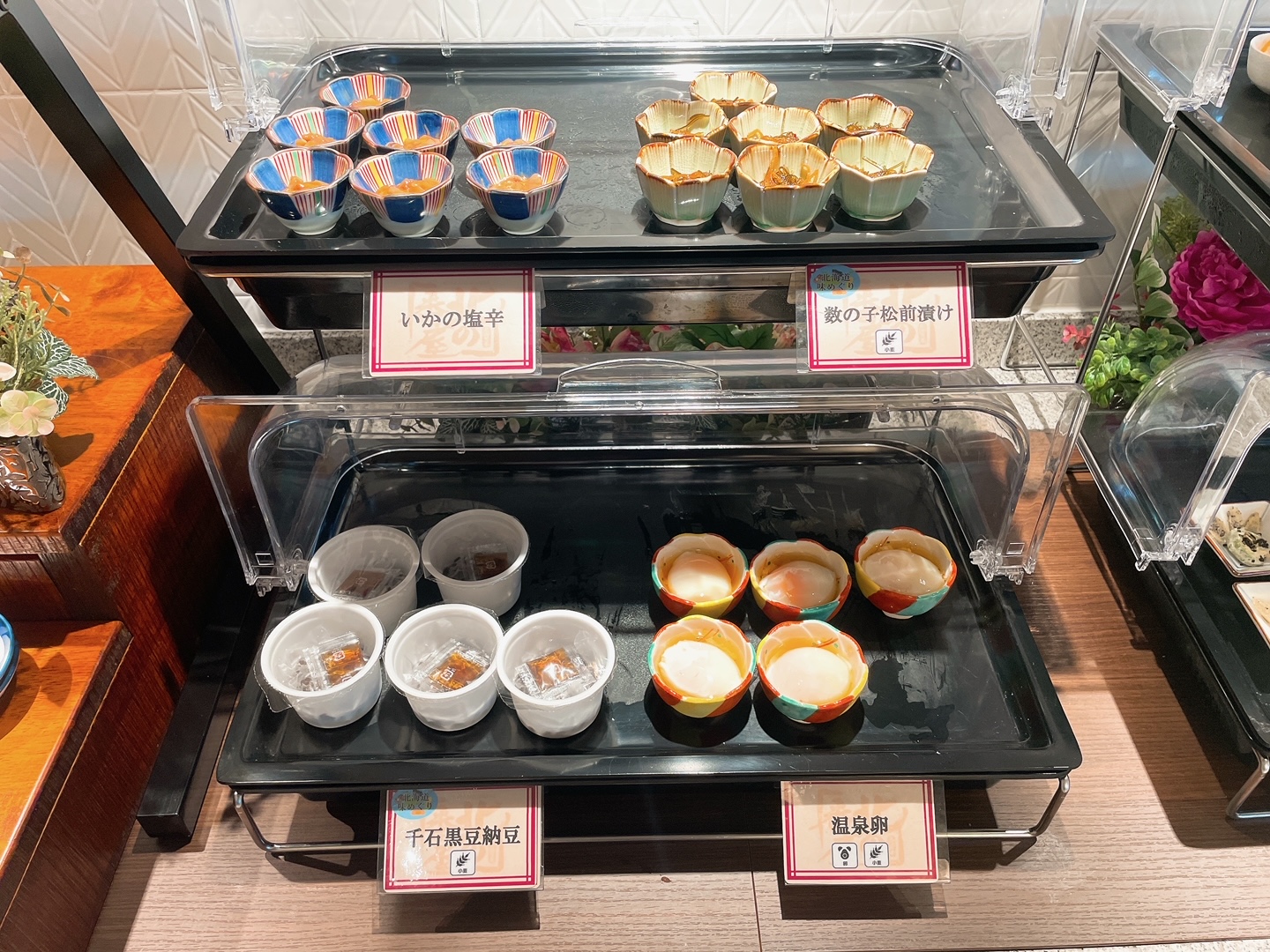 まずはドーミーインなど共立リゾートの宿の朝食で見かける小鉢がたくさん並んでいます