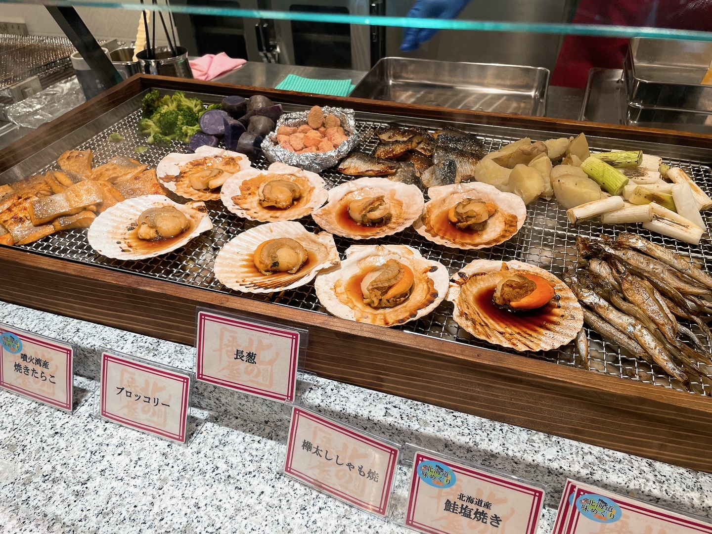 本館のラビスタ函館ベイでは朝食会場入ってすぐに置かれているラビスタ函館ベイの朝食の目玉メニューの一つである海鮮炙り焼きはラビスタ函館ベイANNEXでもたっぷり用意されています。