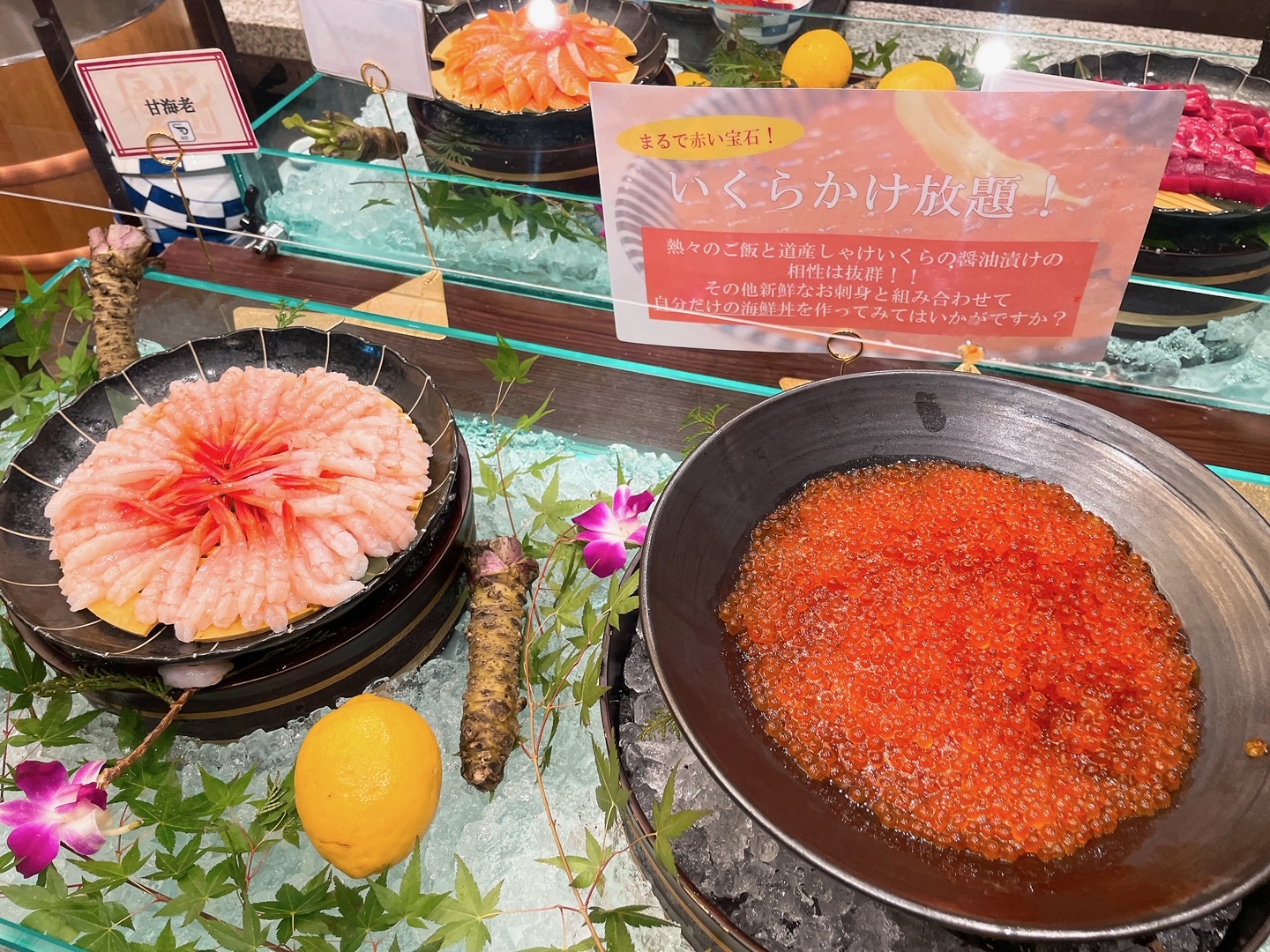 本館のラビスタ函館ベイの方は順番に海鮮炙り焼き→お好み海鮮丼→小鉢などと並んで取っていくので、お替りで海鮮丼だけ欲しい時も長蛇の列に並ぶのは嫌だし、かといって海鮮丼だけ取ろうとすると途中から割り込むような感じになりどうしていいのか迷いましたが、ラビスタ函館ベイANNEXの方は各コーナーが分かれていてレイアウト的にはいいなと感じました。