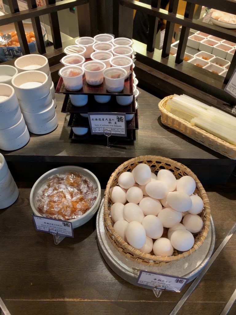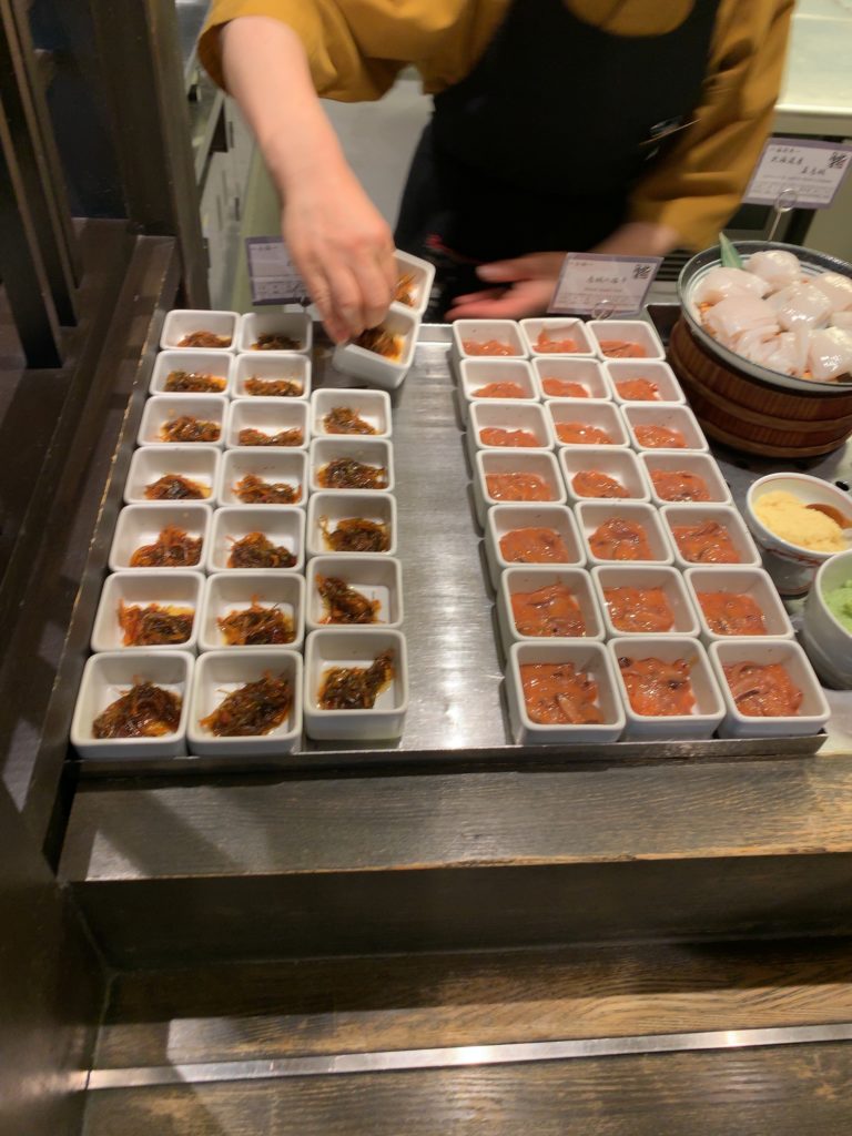 新型コロナウイルス感染拡大を受け、ラビスタ函館ベイでも朝食がブッフェ形式でなくプレートでの提供になっていました。2020年7月19日より「海鮮丼とお選び横丁」という名称で再開となっています。以前のような完全なビュッフェ形式ではありませんが、炙り焼きや海鮮は盛り合わせで、その他は小鉢形式で提供されており、プレートでの提供よりは満足度は高いのではないでしょうか?