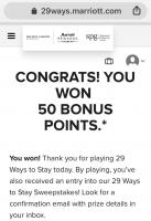 1日1回ゲームに参加して、マリオットポイント(50~20000ポイント)、各ブランドの宿泊権がもらえるというくじのようなキャンペーンです。開催中は毎日1会員につき1日1回ゲーム(くじ引き?)に参加できます。