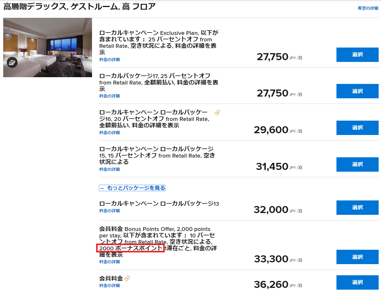 通常料金よりも宿泊料金が高くなる代わりにボーナスポイントを獲得できる宿泊プランを見かけることがあります。