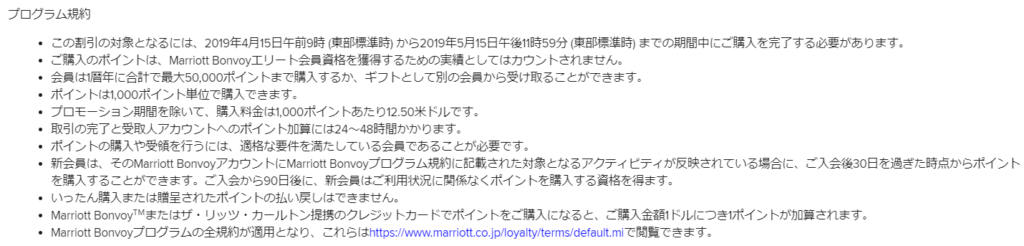 1,000ポイント=12.5米ドルのレートで1,000ポイント単位で、年間50,000ポイントを上限に購入できます。