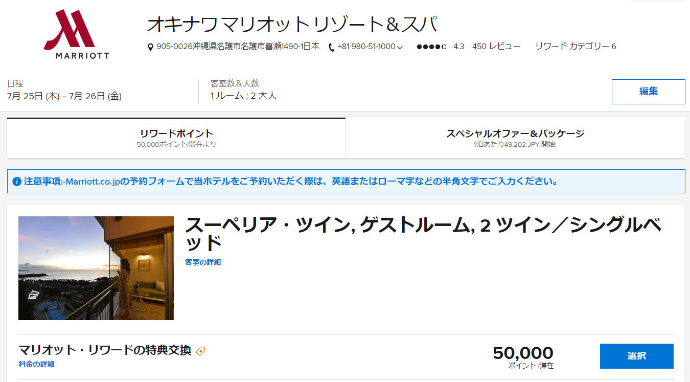 最小1,000ポイントからポイントを利用することでより良い部屋へのアップグレードをすることが一部のホテルとリゾートで可能です。