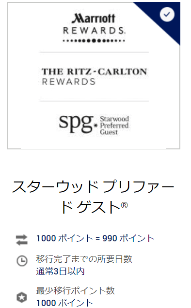 アメックスのメンバーシップ・リワードのポイント(1,000ポイント)をマリオット&SPGのポイント(Marriott Bonvoyポイント)(990ポイント)に交換することが可能です。