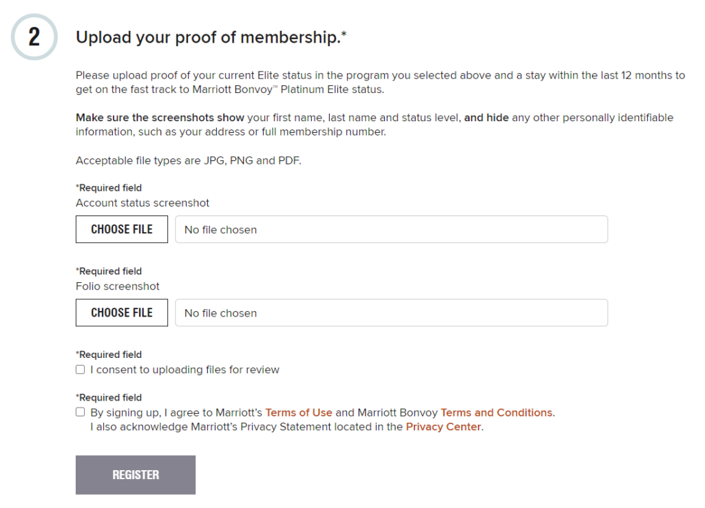 3.Please allow up to 10 business days for registration approval. If approved, member will be upgraded to Platinum Elite within 24 to 48 hours.