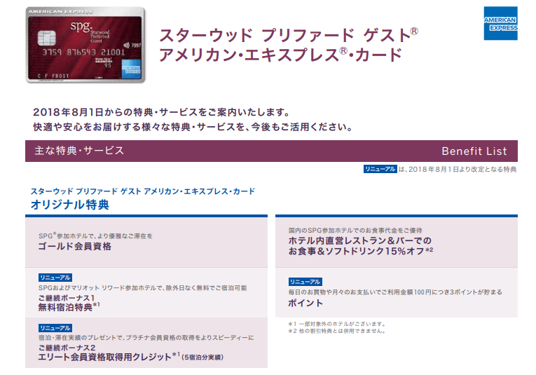 SPGアメックスはとりあえず存続するようです。以下の記載がありますが特典については現時点で詳細な記載はありません。