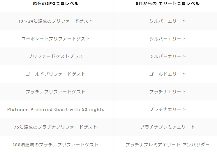 2019年1月1日から、エリート会員資格の獲得は滞在数ではなく宿泊日数によって計算されます。それまでSPG会員はSPGのブランド限定で滞在回数に基づいて会員資格を獲得できます。