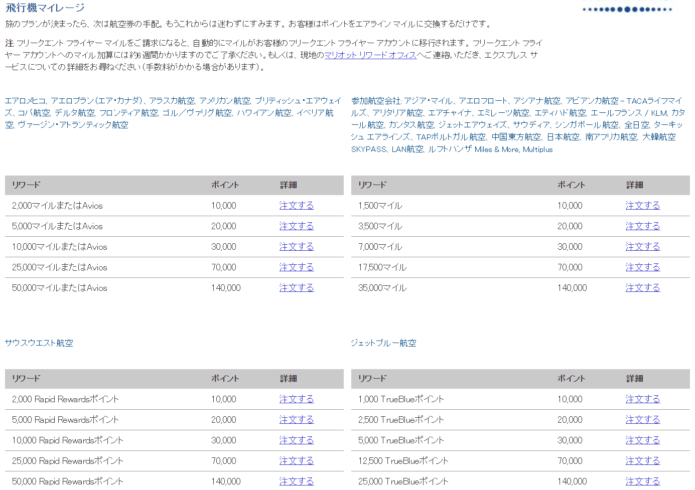まずこれらを検証する上で必要なのはトラベルパッケージを使わなかった場合に各航空会社のマイルや無料宿泊に交換する場合に必要なマリオットリワードポイントがどれくらい必要かということを考えなくてはいけません。
