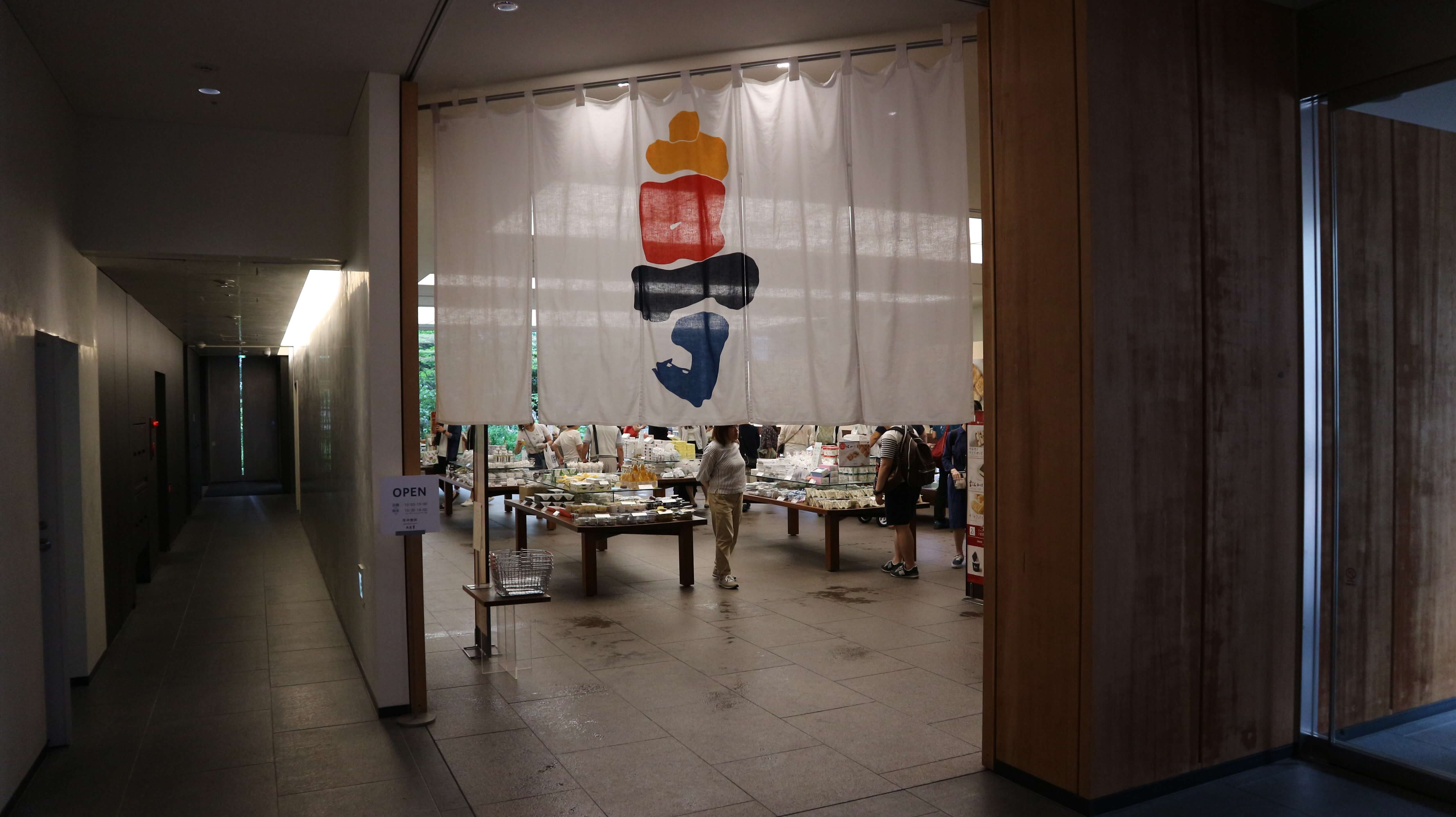 自動ドアを入ると暖簾があり、こちらが六花亭の店舗になります。このビルは10階建てですが六花亭は1階の店舗と2階の喫茶室のみです。