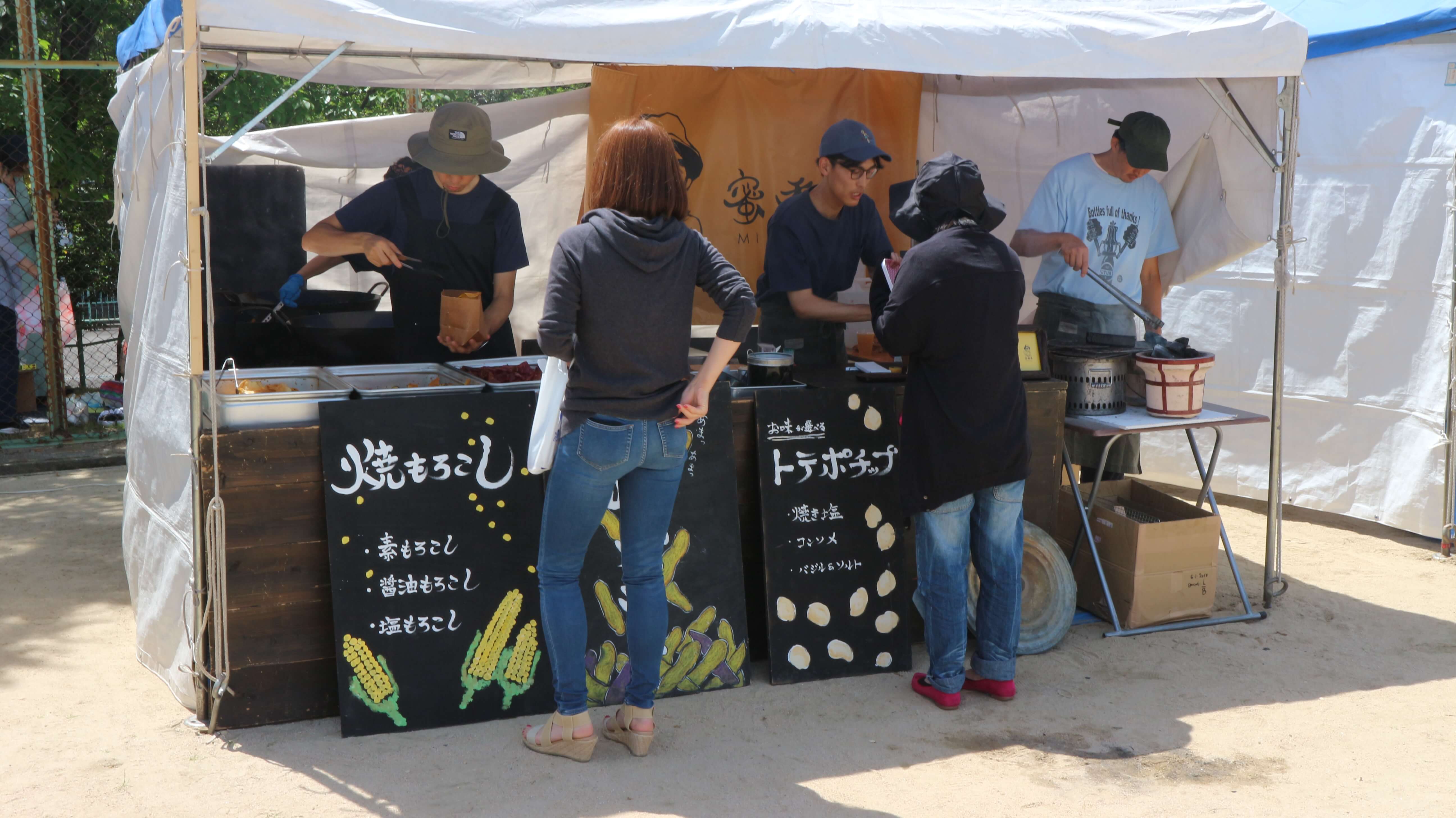 お肉のうまみがギュッと入った肉巻きおにぎりは、お父さんたちが薪で豪快に焼き上げます! ビールに間違いない組み合わせのウィンナーはお子様にも大人気です ぜひ寄ってみてください〜!