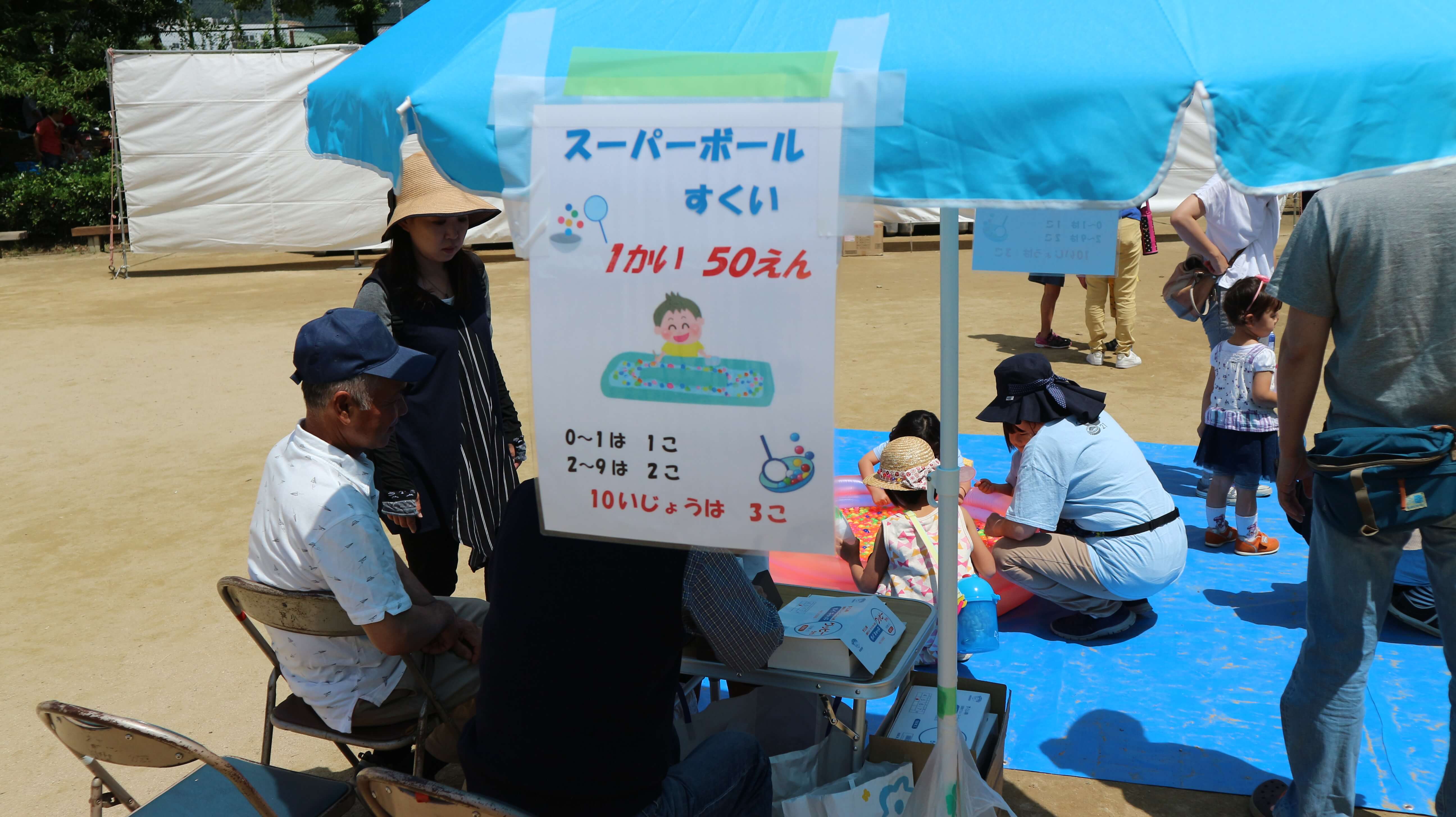 牧落自治会連合会のブースにはお祭りのようなスーパーボールすくいや輪投げなどのコーナーがあります