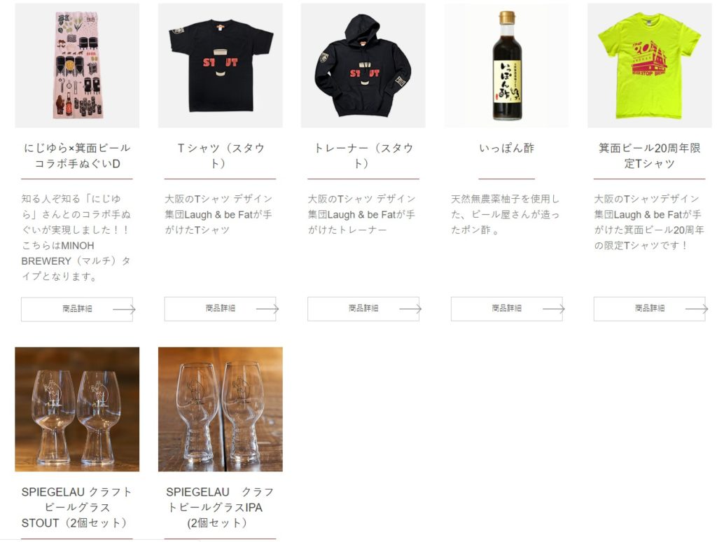 箕面ビールの公式ホームページでは箕面ビールのオリジナルグッズを購入することもできます