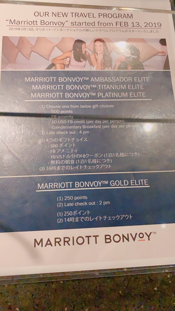 マリオットエリート会員の特典については以下の記事をご参照下さい。