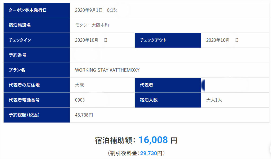 今回の割引プラン「Working Stay #atthemoxy」は「Go To トラベルキャンペーン」の適用対象となりますので以下のように1泊あたり税サ込でも6000円以下で宿泊することが可能となります。