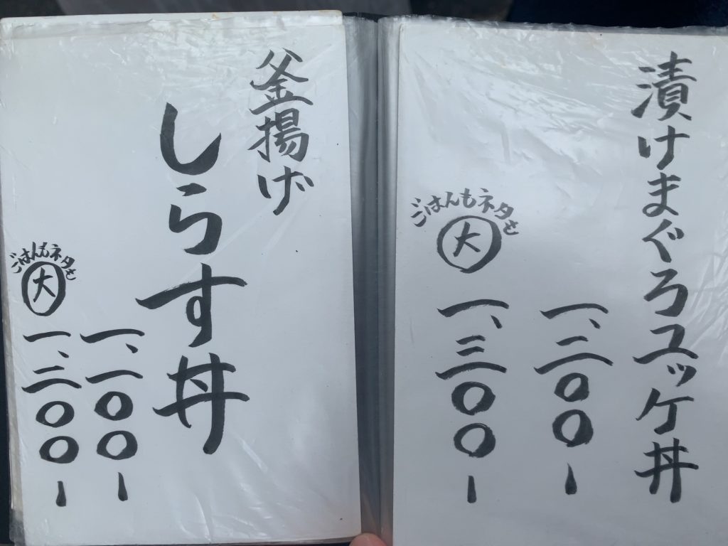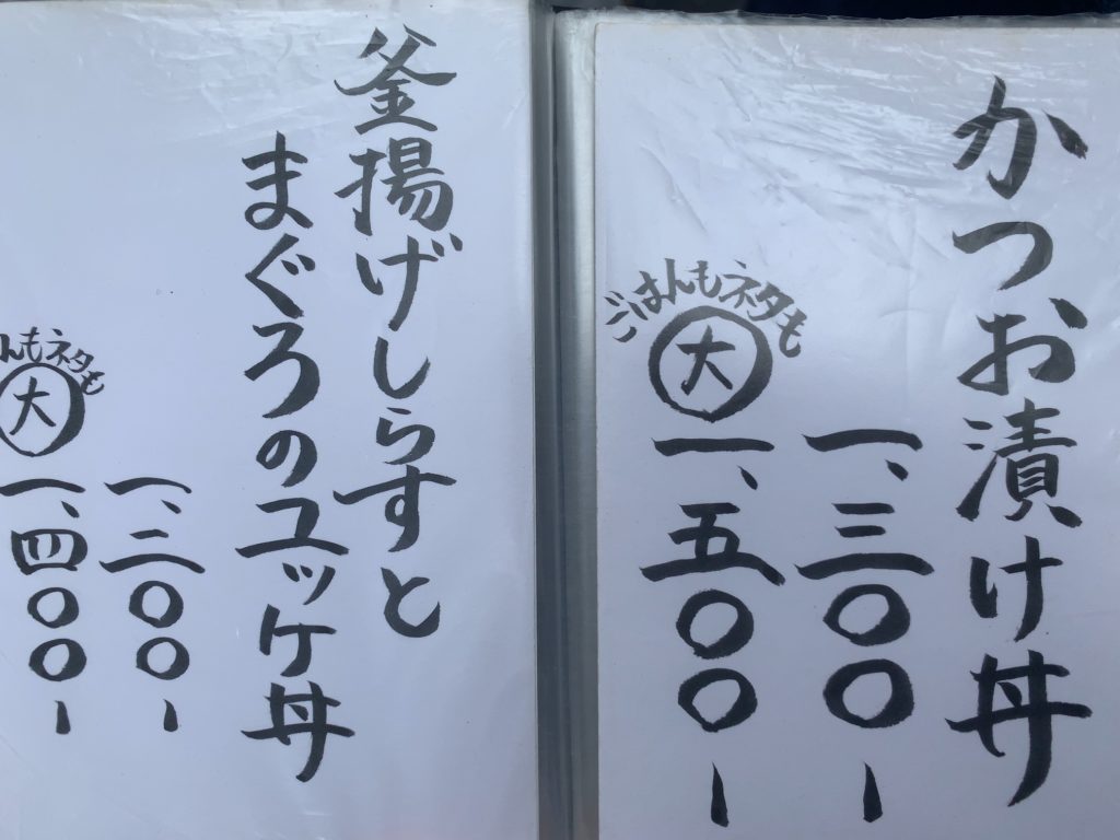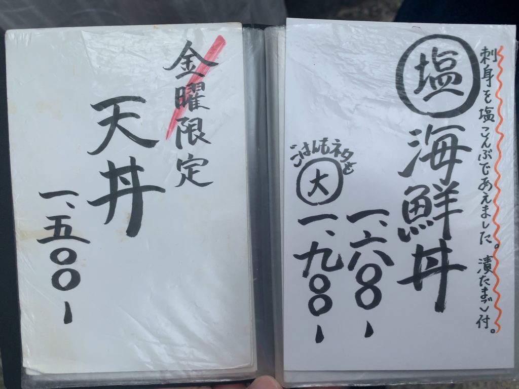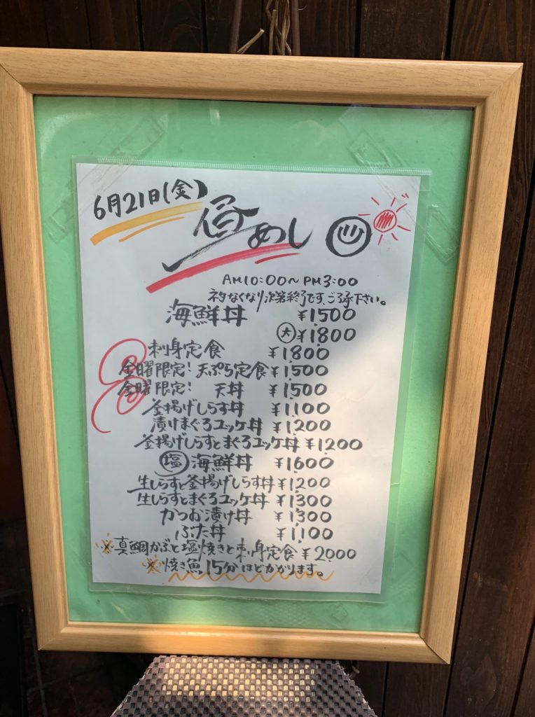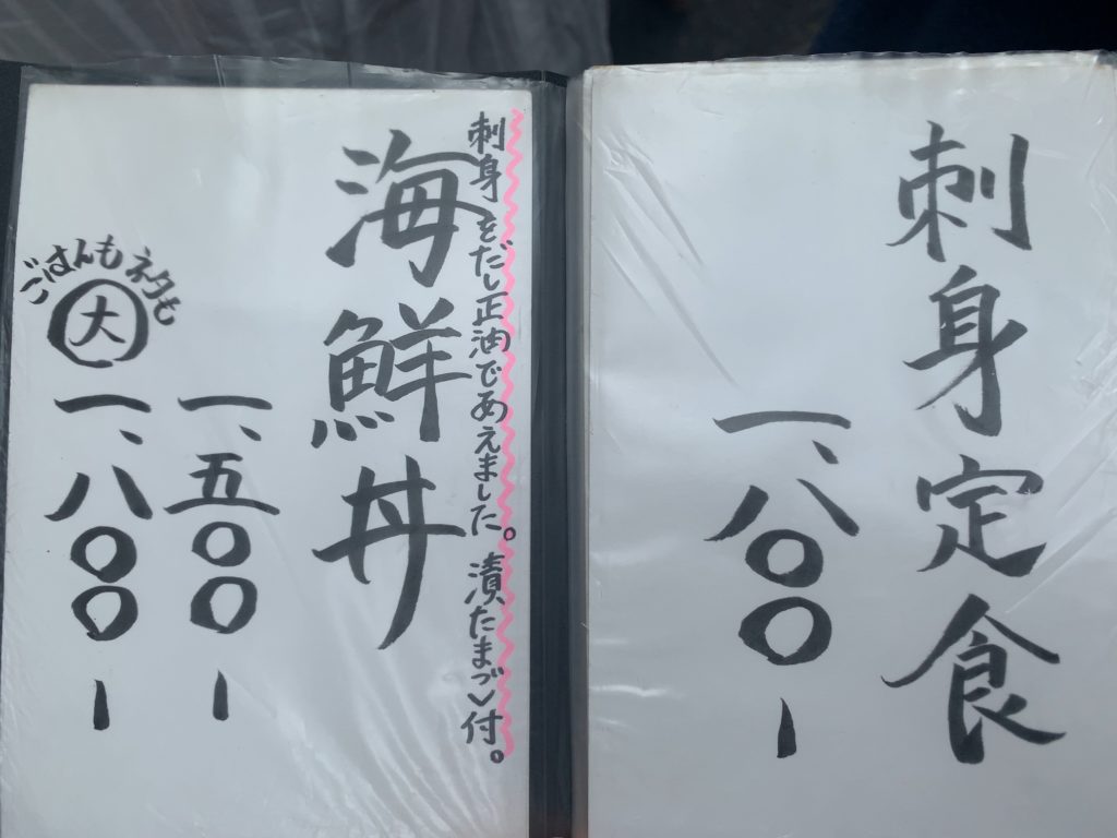 固定メニューは「海鮮丼」と「刺身定食」のみのようです