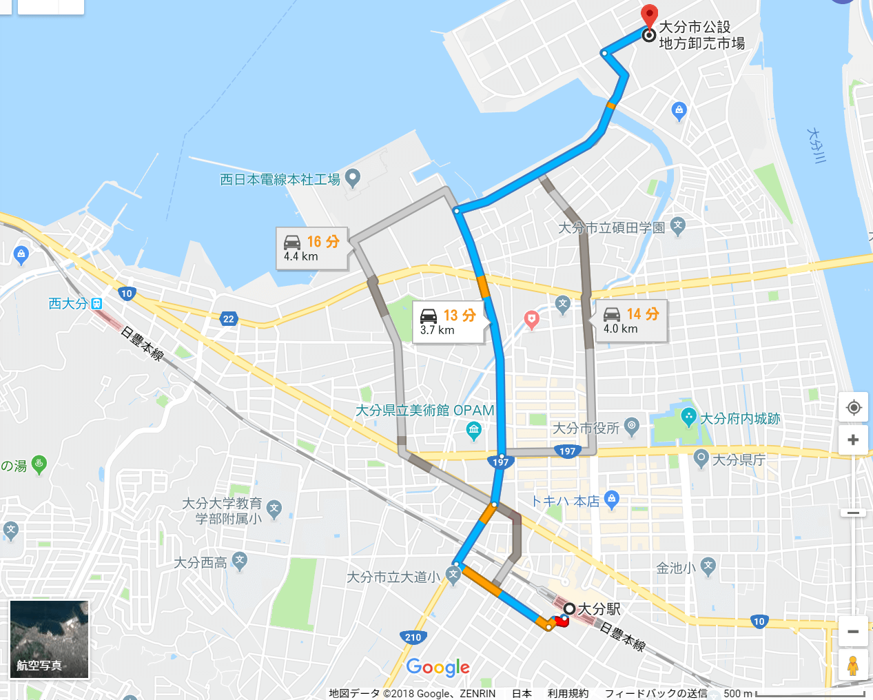 大分市公設地方卸売市場は大分市豊海という場所にあります。私は大分駅にある「JR九州ホテル ブラッサム大分」に宿泊していました。ホテルの様子は以下の記事でご紹介しています。
