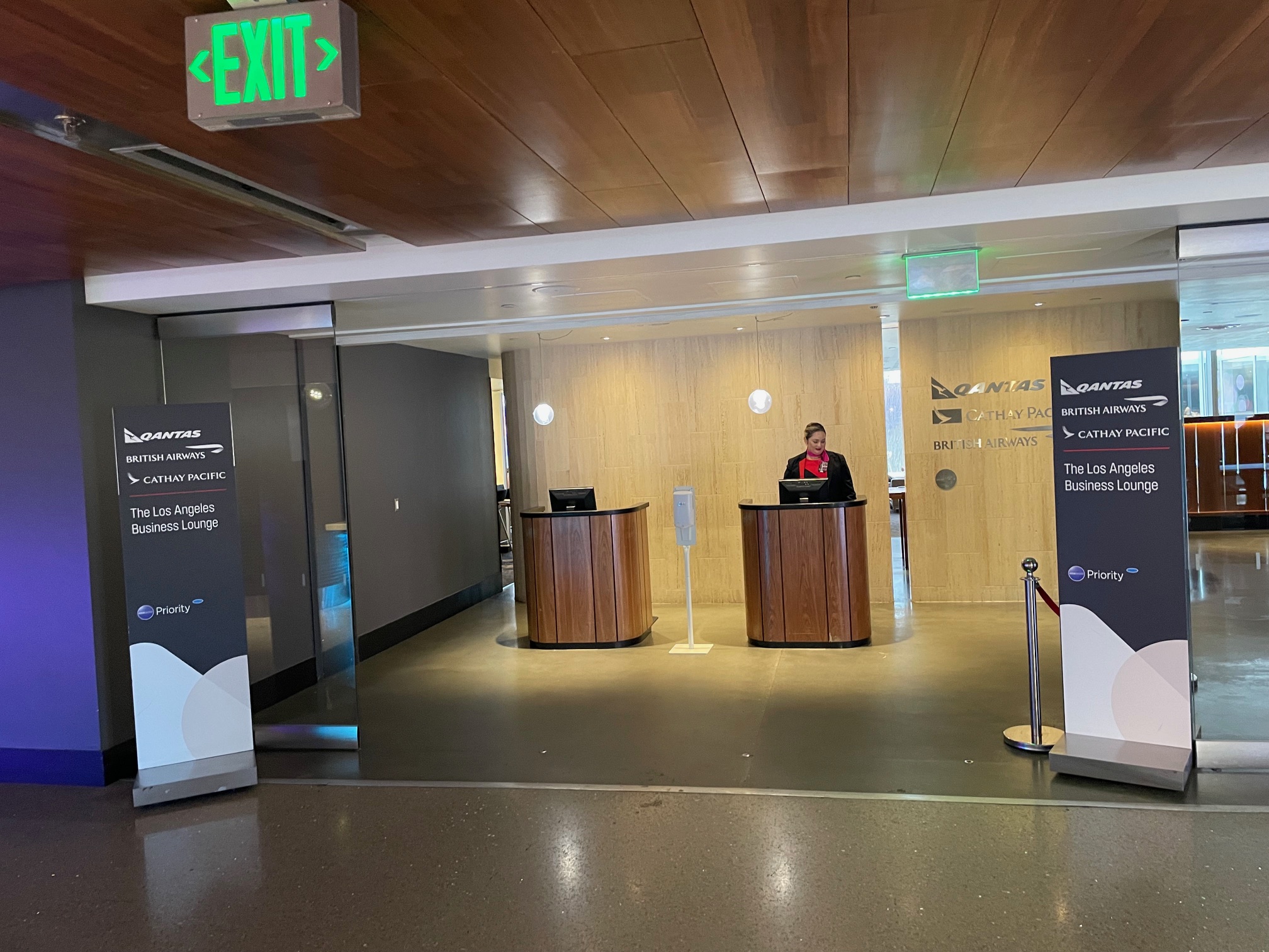エレベーターまたはエスカレーターを降りて右手に向かうとワンワールドラウンジのレセプションが見えます。看板にはワンワールドのマークはあるもののJALのマークはなく、「The Los Angeles Business Lounge」との記載がありワンワールドラウンジではないのかもと1回入口をスルーしてしまいましたが、受付の人に聞くとここでよいとのことでした(^^;