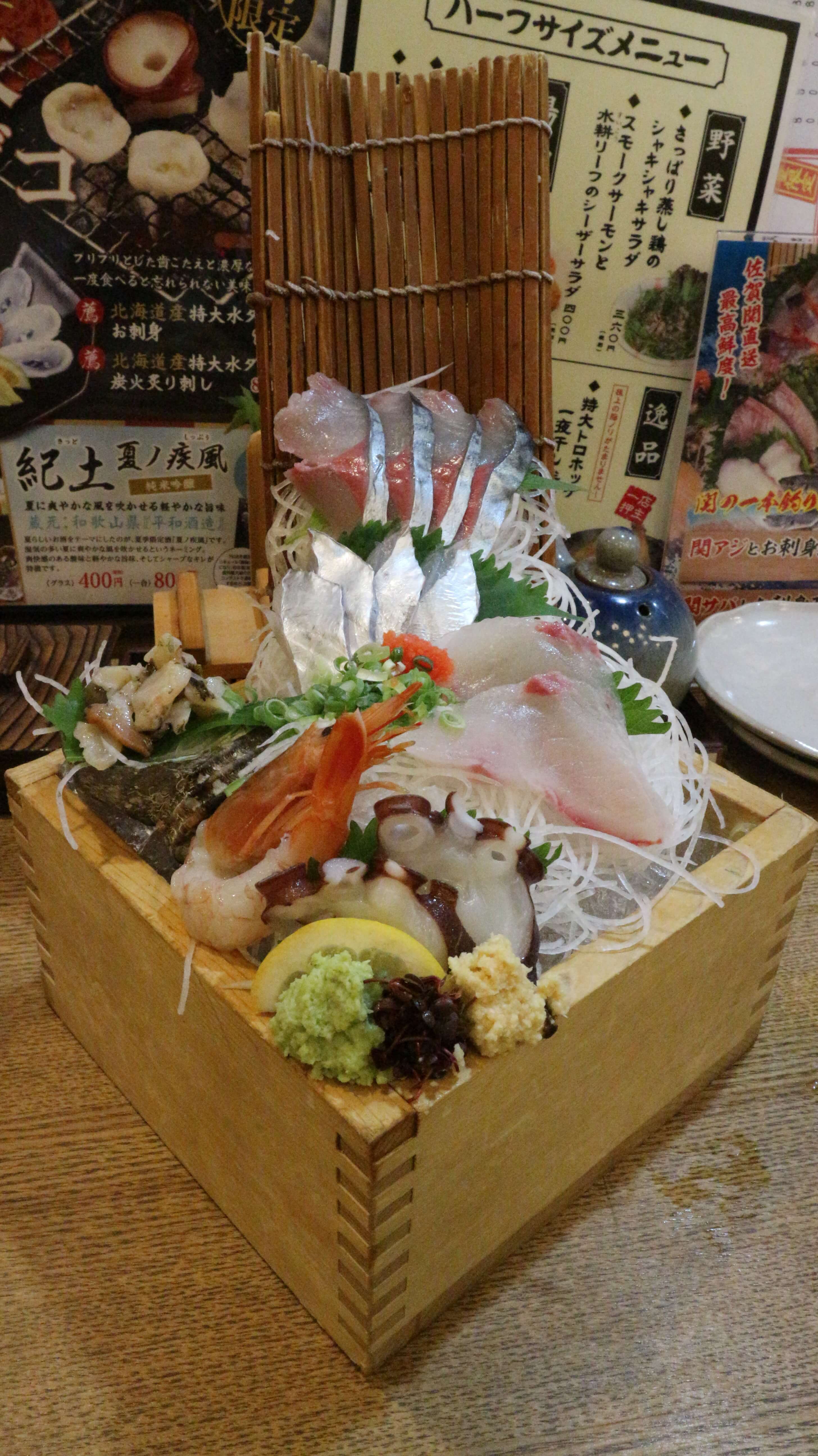 目玉商品は「刺身十種枡盛り」のようです。他にも関アジ関サバ、りゅうきゅう、とり天、中津から揚げなど大分名物を頂くことができます。