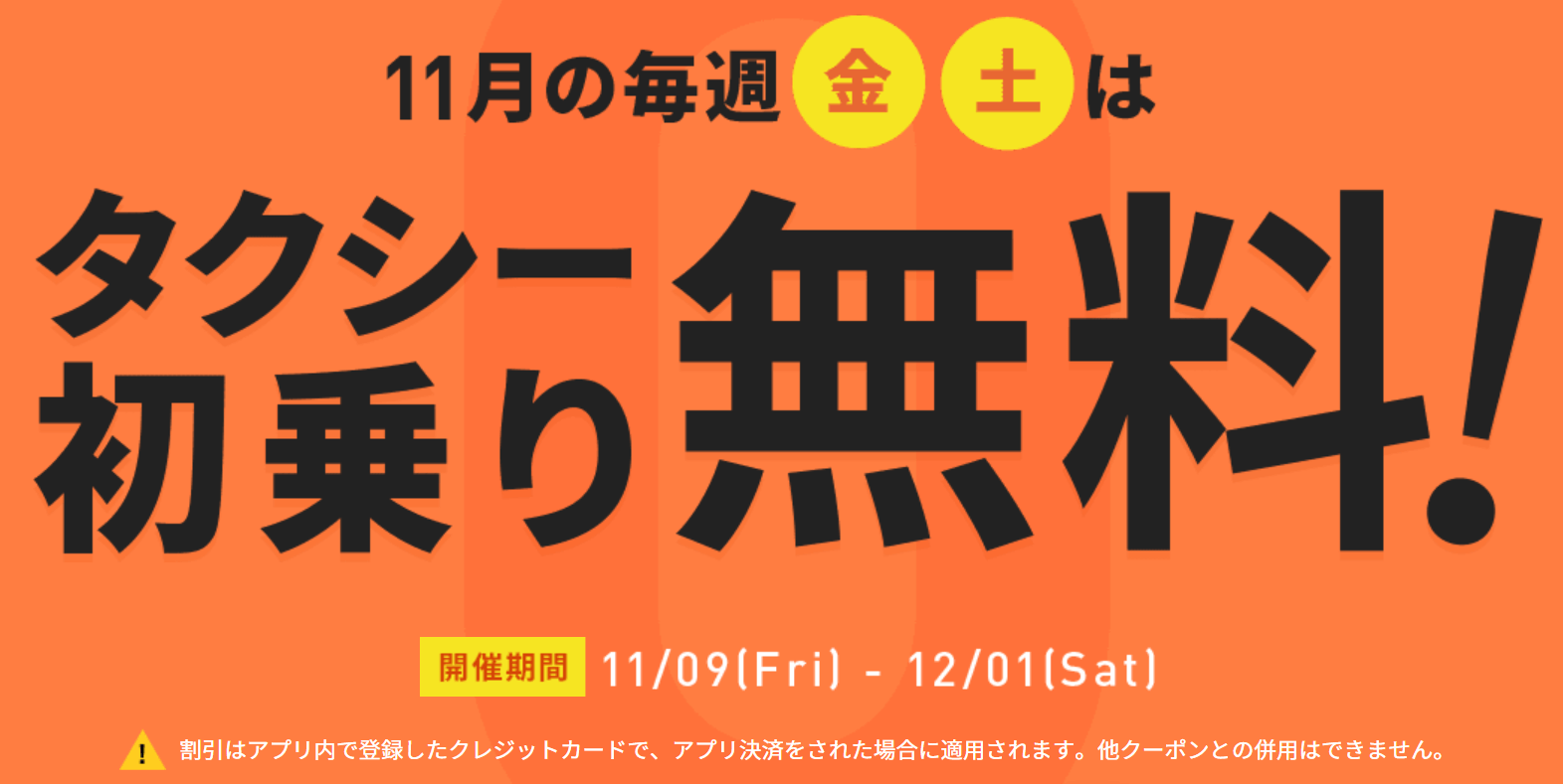 11月の毎週金曜土曜初乗り無料キャンペーン(終了)