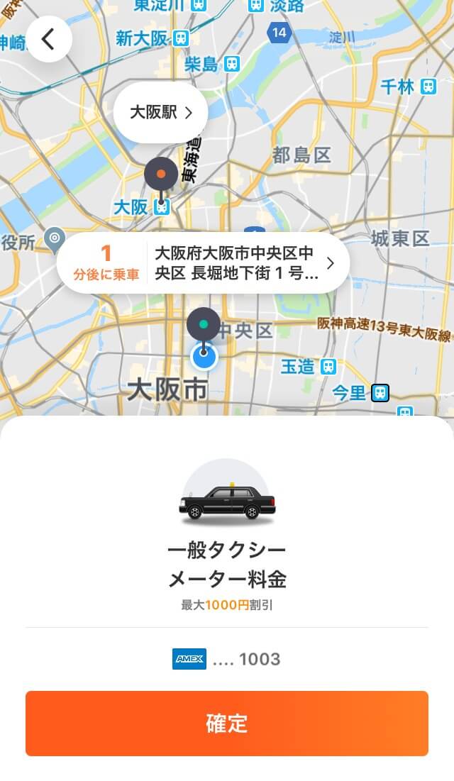 DiDiの対応エリアのうち、大阪エリアでタクシーご乗車された場合