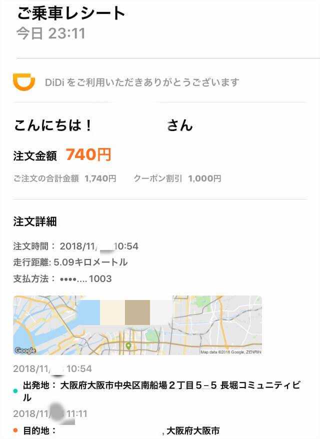 - DiDiの対応エリアのうち、大阪エリアでタクシーご乗車された場合