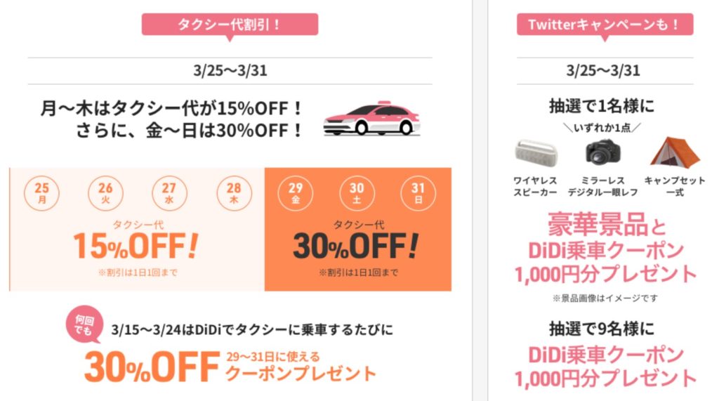 DiDiでタクるとおトクな春!キャンペーン(終了)