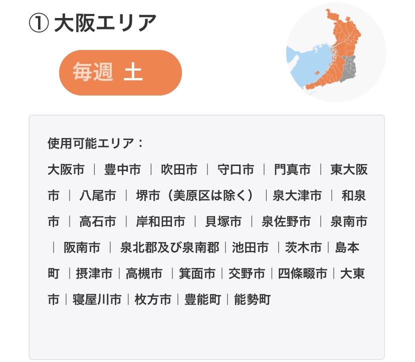大阪での利用可能エリアはどんどん広がってきており、2019年3月27日より新たに北摂エリアが対象となりました。